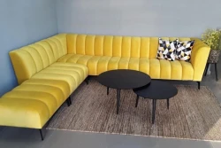 זה יכול לתפקד כאזור ישיבה נוספת או ספה העיקרי בחלל קטן. עבור שטח גדול, זה יכול להיות מתואמת עם 3 כסאות נוח מושבית או ליצור עיצוב אישי שלך. הדום עם בד זהה הספה יוסיף מקום לשים את הרגליים אחרי יום ארוך.