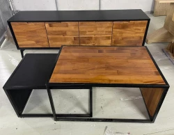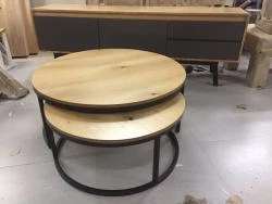 2 שולחנות סלון אלון מבוקע שילוב ברזל